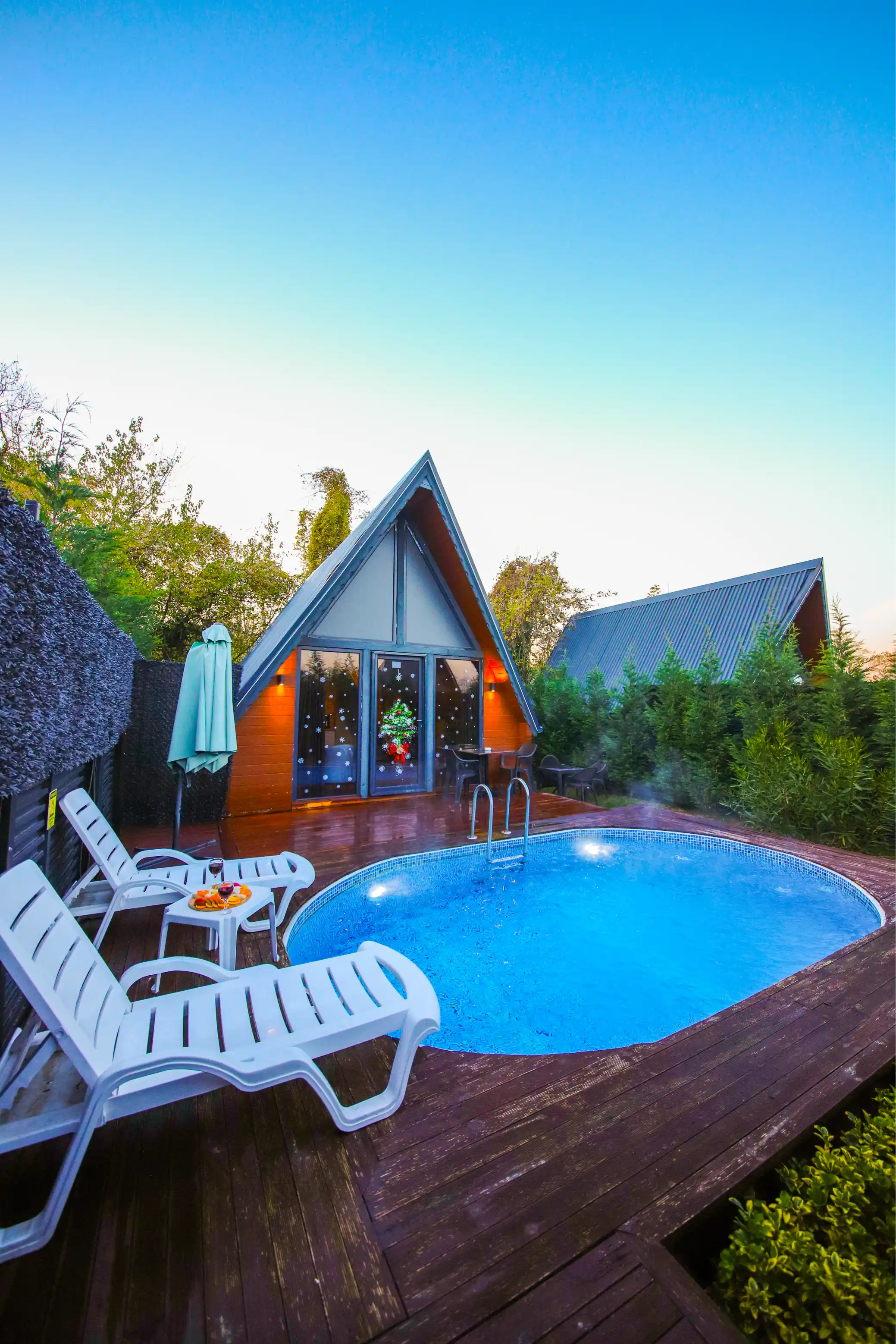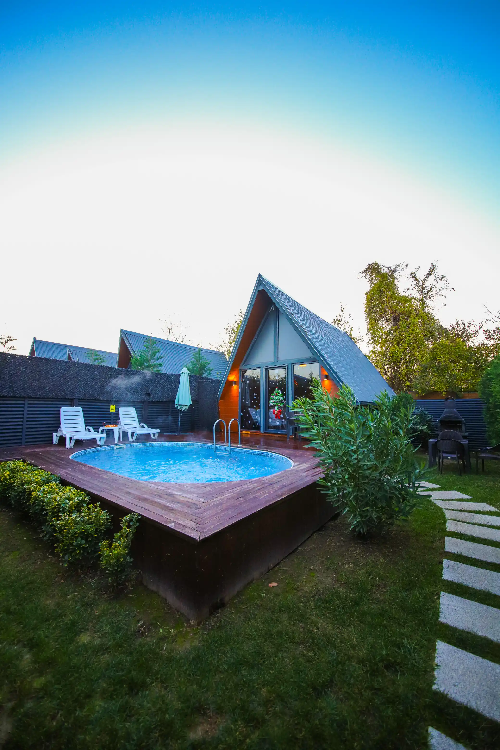 Özel korunaklı yüzme havuzu (3x5 metre, 1.5 metre derinlik, mevsimsel ısıtmalı)