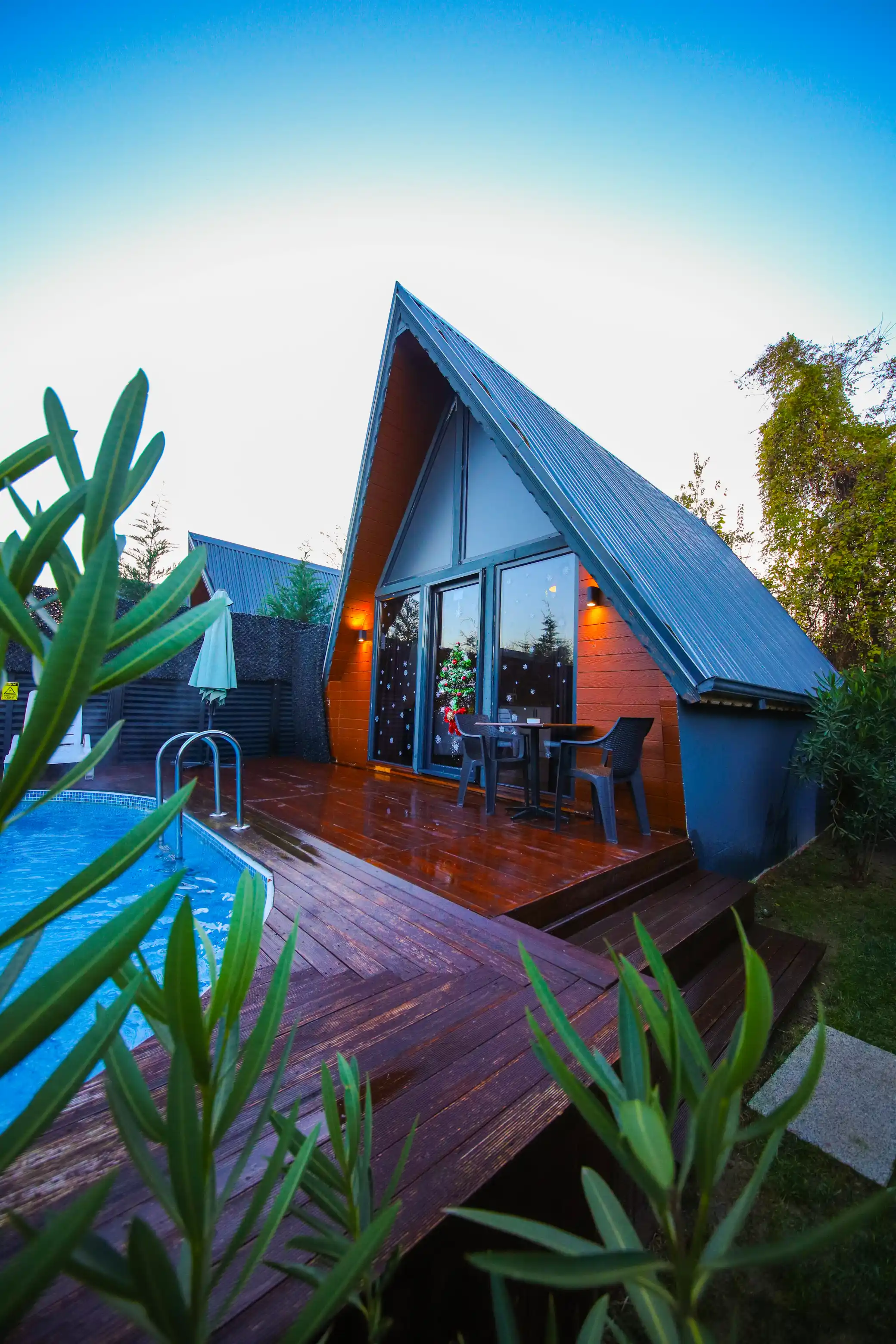Özel korunaklı yüzme havuzu (3x5 metre, 1.5 metre derinlik, mevsimsel ısıtmalı)